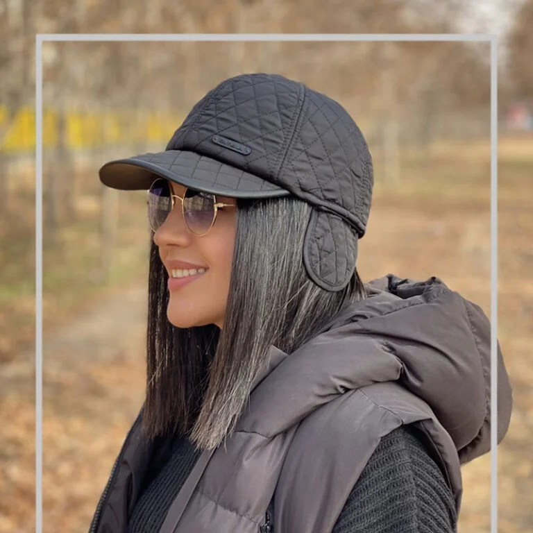 توجه بفرمایید که رنگ طوسی یکی دو درجه از رنگ طوسی داخل اسلاید اول روشن تر است و بیشتر نزدیک به رنگ کلاه طوسی روی سر مدل خانم میباشد.